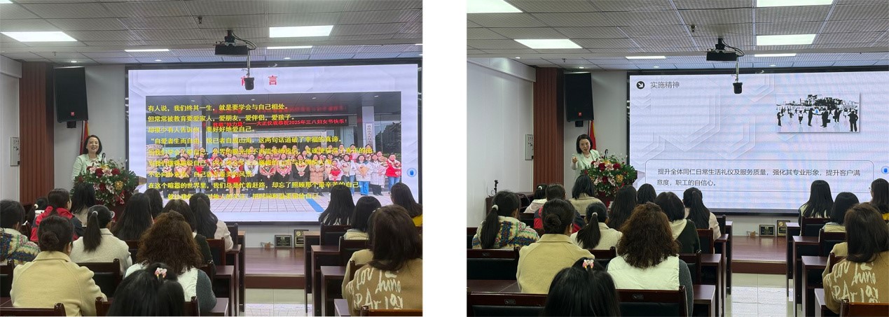 Het evenement ging van start in de vergaderruimte van het bedrijf. Namens het bedrijf groette mevrouw Wen alle vrouwelijke collega's oprecht tijdens het festival. In haar toespraak richtte ze zich niet op grootse carrièrevisies, maar op iedere vrouw zelf.